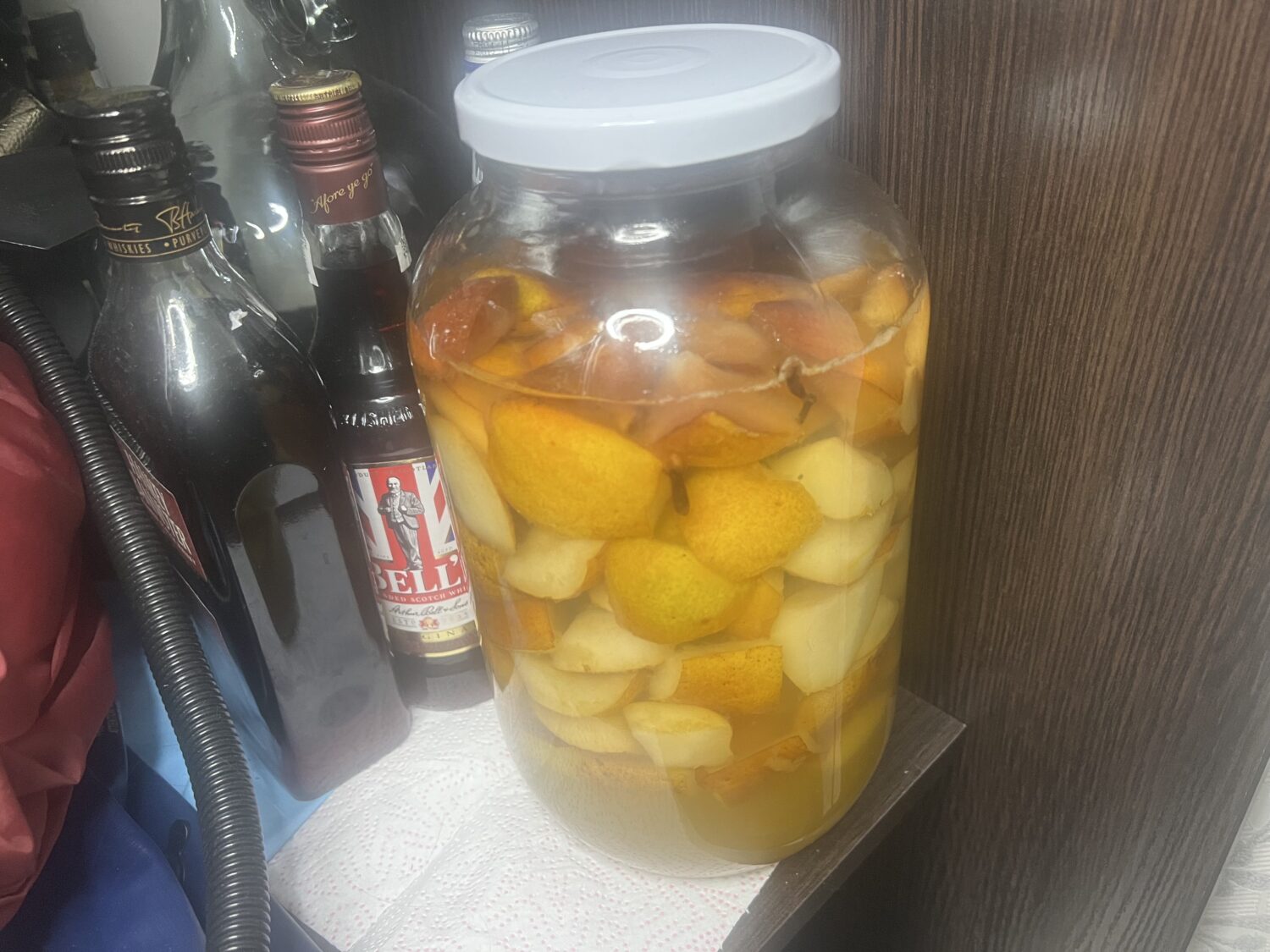 Залийте суміш горілкою, щоб вона повністю покрила фрукти. Закрийте банку кришкою і добре струсніть, щоб всі компоненти перемішалися.