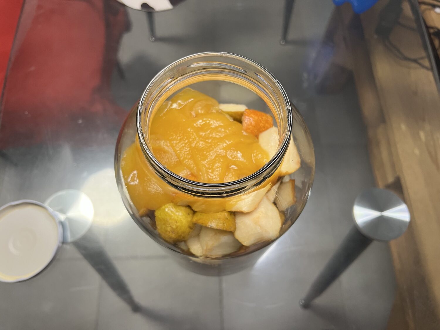 Залейте смесь водкой, чтобы она полностью покрыла фрукты. Закройте банку крышкой и хорошо встряхните, чтобы все компоненты перемешались.